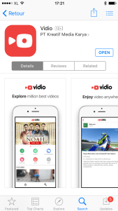 Aplikasi ponsel pintar iOS Vidio sudah dirilis! Bagi pemilik IPhone atau IPad, untuk mendapatkan aplikasi Vidio, tinggal mencari aplikasi dengan kata kunci “Vidio” (bukan “Video”) di App Store sebelum mengunduhnya.