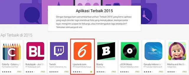 Selamat kepada tim engineering, product dan desainer yang berusaha keras menjadikan app Liputan6 dapat terpilih sebagai salah satu aplikasi terbaik tahun 2015.