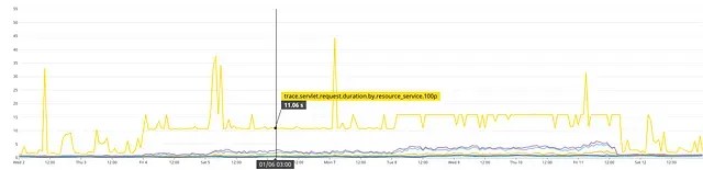 Di suatu pagi yang mendung, saat saya melihat dashboard dari Timeline, saya melihat ada lonjakan max latency yang tidak pernah turun. Saya coba cari request apa yang memiliki lonjakan tersebut, dan saya menemukan request yang di dalamnya berkomunikasi dengan thumbor.